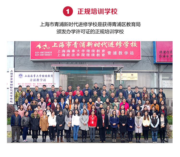 青浦新时代是青浦区领先的综合性成人学校,办学许可证号:教民131011870 000120 号。我校于1995年成立,建校27年,与上海理工大学、上海第二工业 大学、上海政法学院和上海海事大学等多所上海一本高校合作,为青浦地区学 员的学历提升,职业发展以及青浦本地的经济发展做出了巨大的作用。